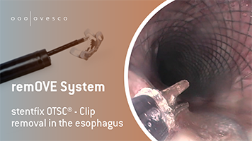 A major challenge in stent placement is the subsequent risk of migration. With the stentFIX System, stents can be fixed distally and proximally to significantly reduce this risk. A specially designed Ovesco clip is used to fix the stent to the tissue. For subsequent removal of the stent, the fixing clip can be systematically fragmented and removed with the remOVE System.